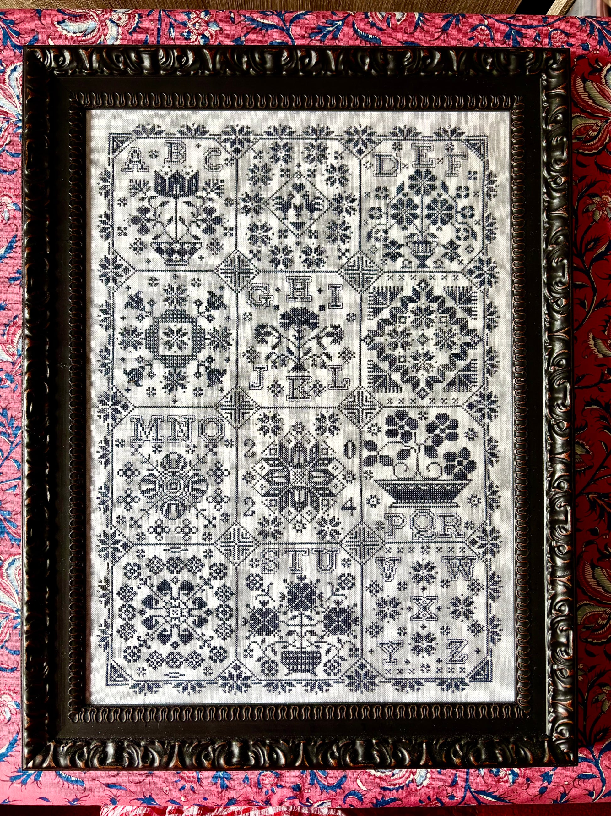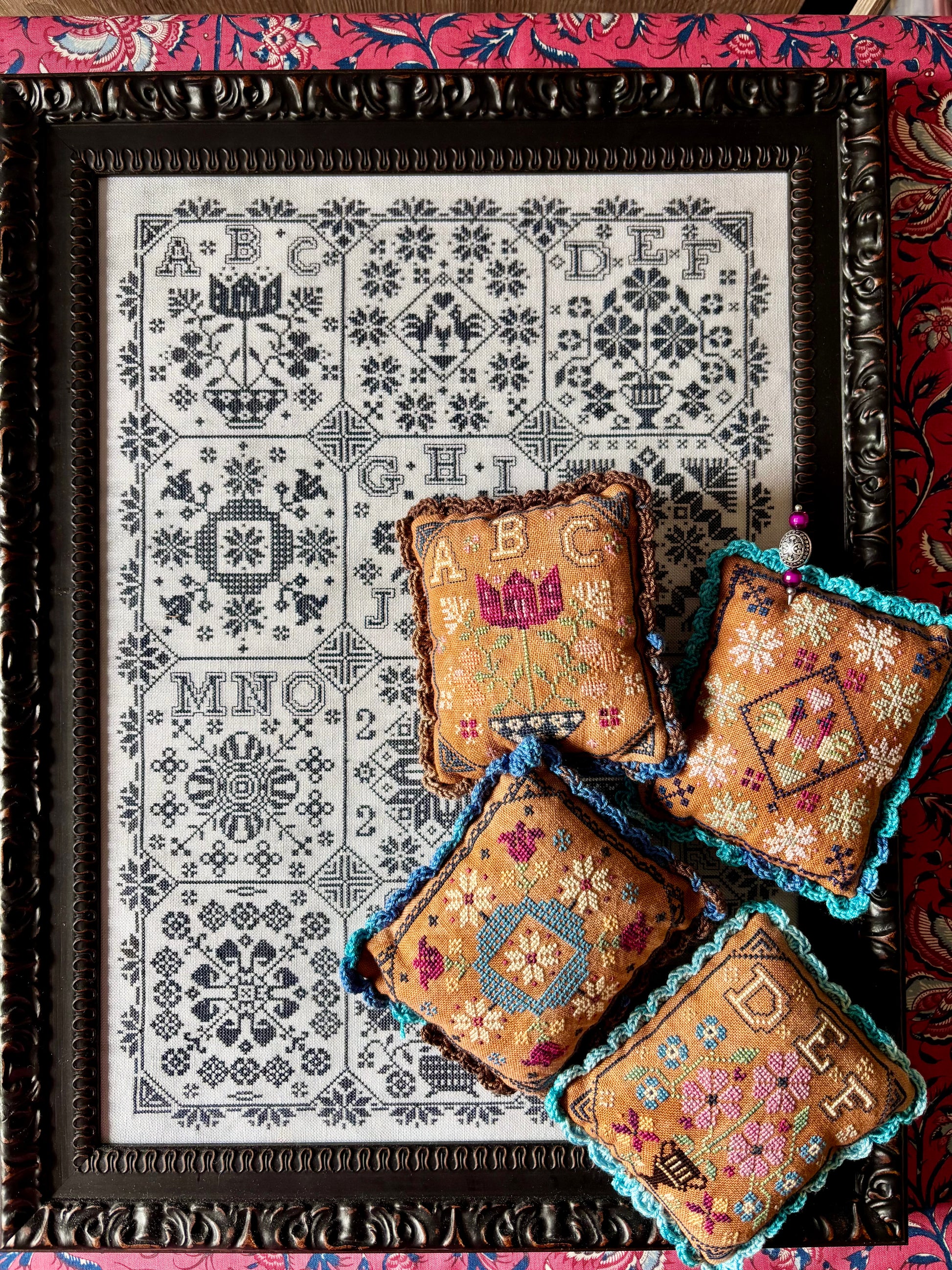 A 12-block sampler featuring alphabet letters and motifs. This versatile design includes a bonus booklet with each block charted separately—perfect for finishing as mini samplers or pillows.
